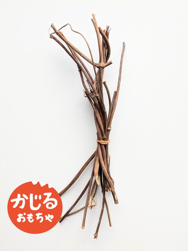 農薬や化学肥料を使わない廣田農園で育ったホップのツルです。 ホップのツルを棒状にしています。 農園の看板インコ達の愛用品です。 繊維質なのでストリングチーズの様に 細かくほぐす楽しさを味わうことができます。 皮をむいたり、芯の硬い部分を細かく裂いてみたり。 味わいも良いのか、我が家では大変好まれています。 ツルウメモドキより柔らかいので 噛む力が比較的ソフトなセキセイさんもお楽しみいただける硬さです。 人工物にはない複雑さに触れることで、 五感が刺激され、脳トレにもなると思います。 自然物の複雑な形を舌で感じて、 どこから齧ろうか考えていて楽しそうです。 破壊する喜びもあります。 ゲージのワイヤーに引っ掛けたり、吊るしたり、使い方は自由。 かじってストレス解消! なお、写真は参考商品です。 自然物のため、一本一本、個体差があります。 同じように処理しますが、写真のものと違うことがあります。 ご了承ください。 茎職人のみなさんのカジカジおもちゃに。 無農薬無化学肥料で栽培している自然の産物のため、虫などが混入することがあります。 気になる方は購入をお控えください。