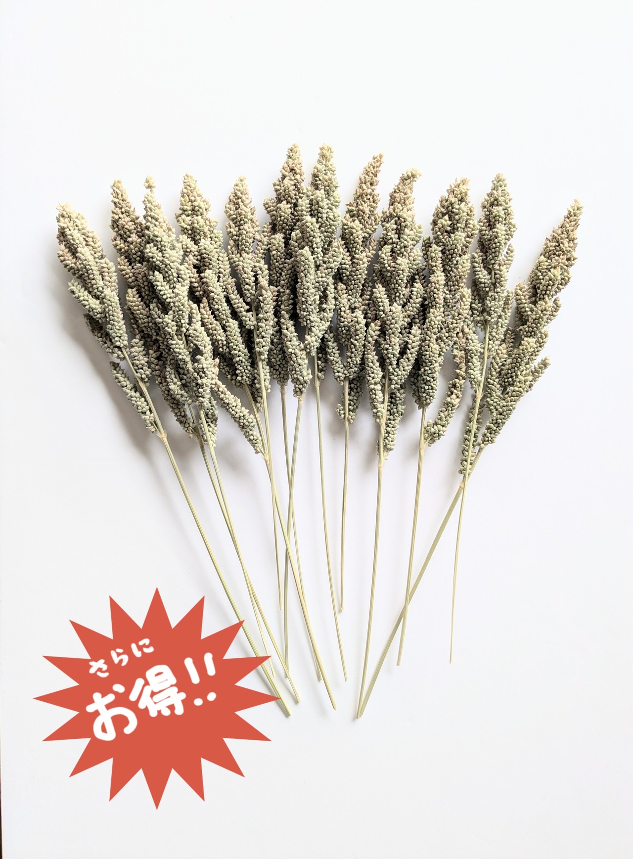 緑色の部分が多い穂ですが物によっては茶色の部分もあります。