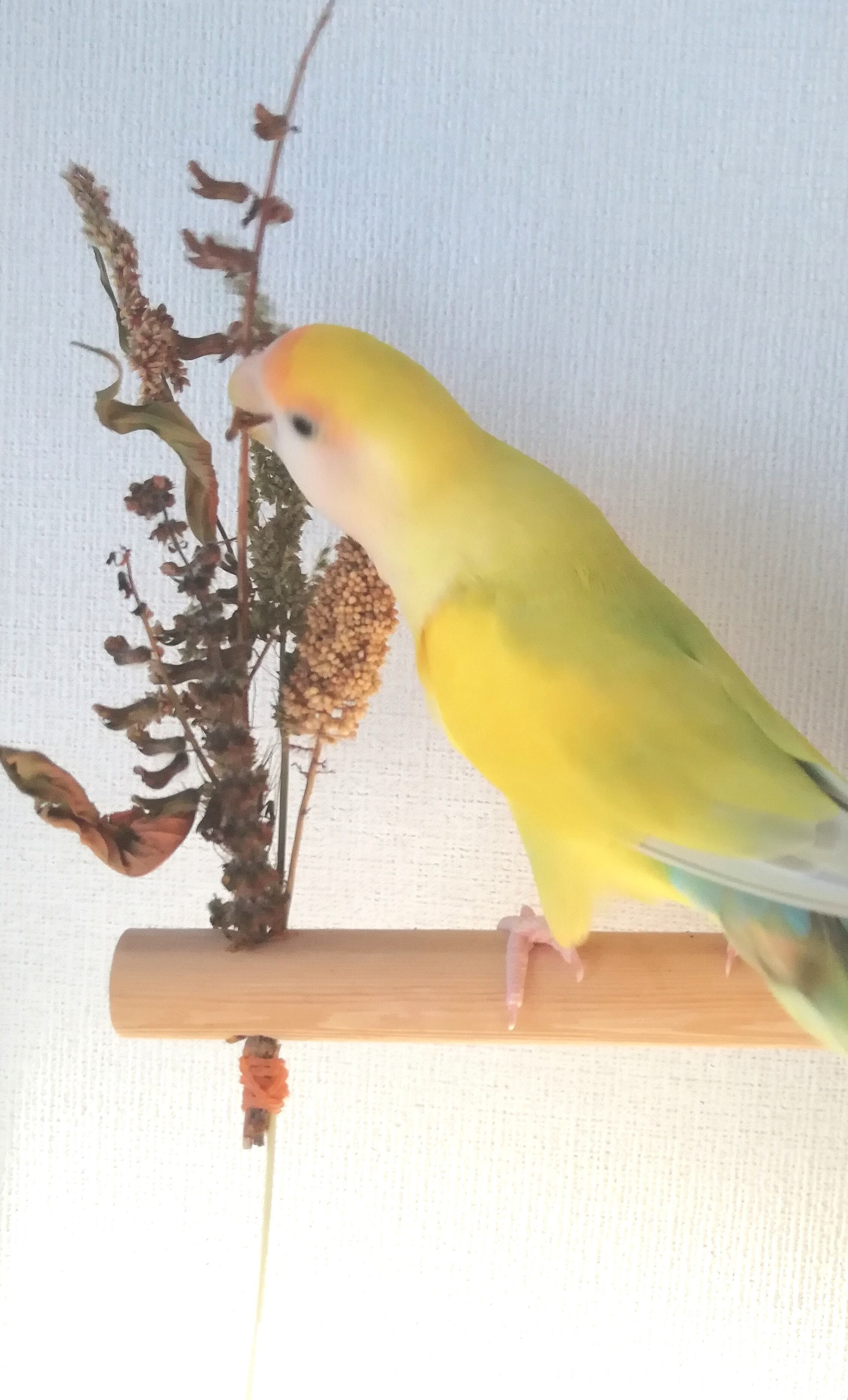 鳥さんに実際に穂を、見て、触れて、楽しんでいただいて