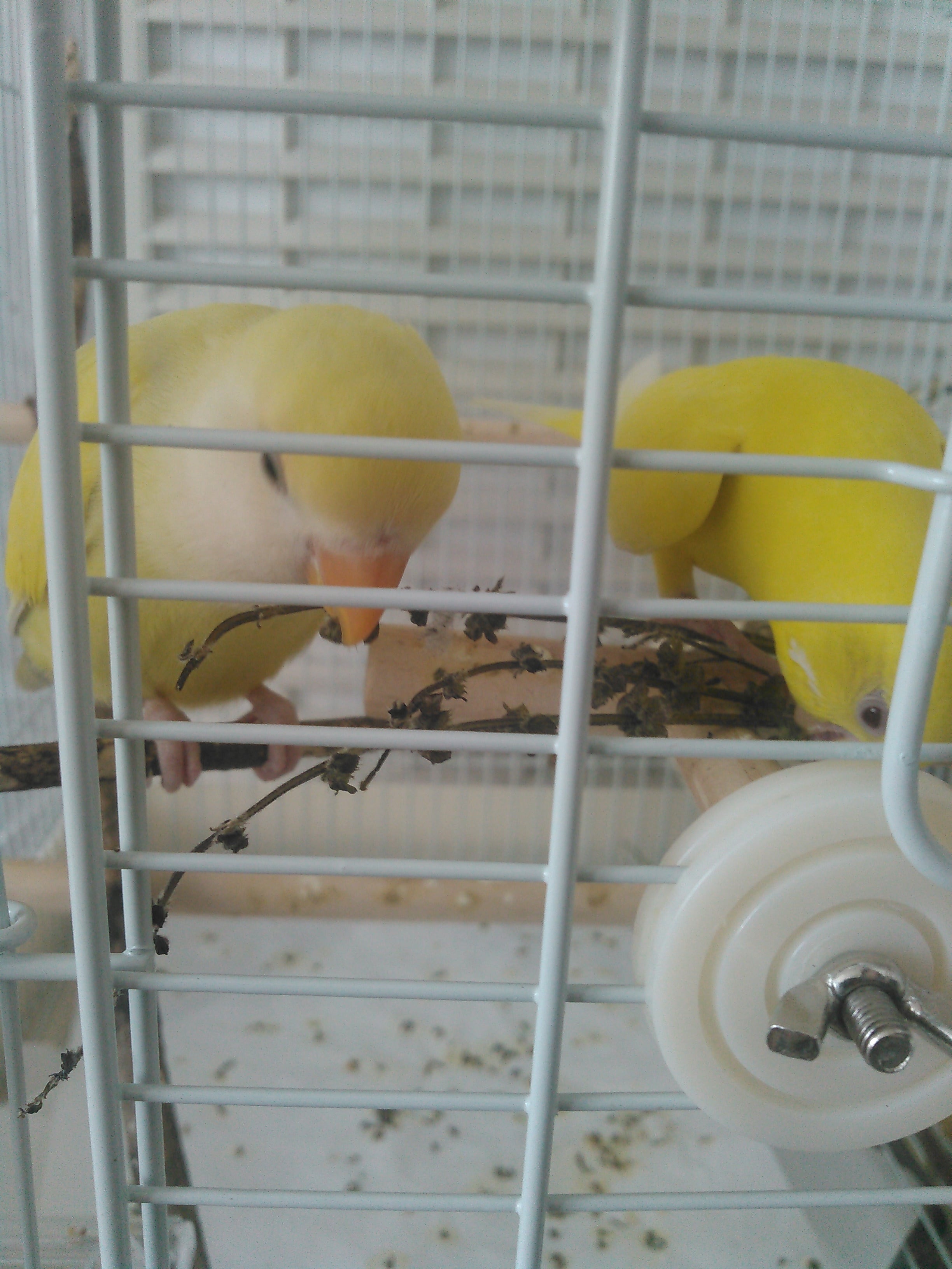 鳥さんの食後は鳥かご、鳥さんからホーリーバジルの香りが漂ってきて癒されます。